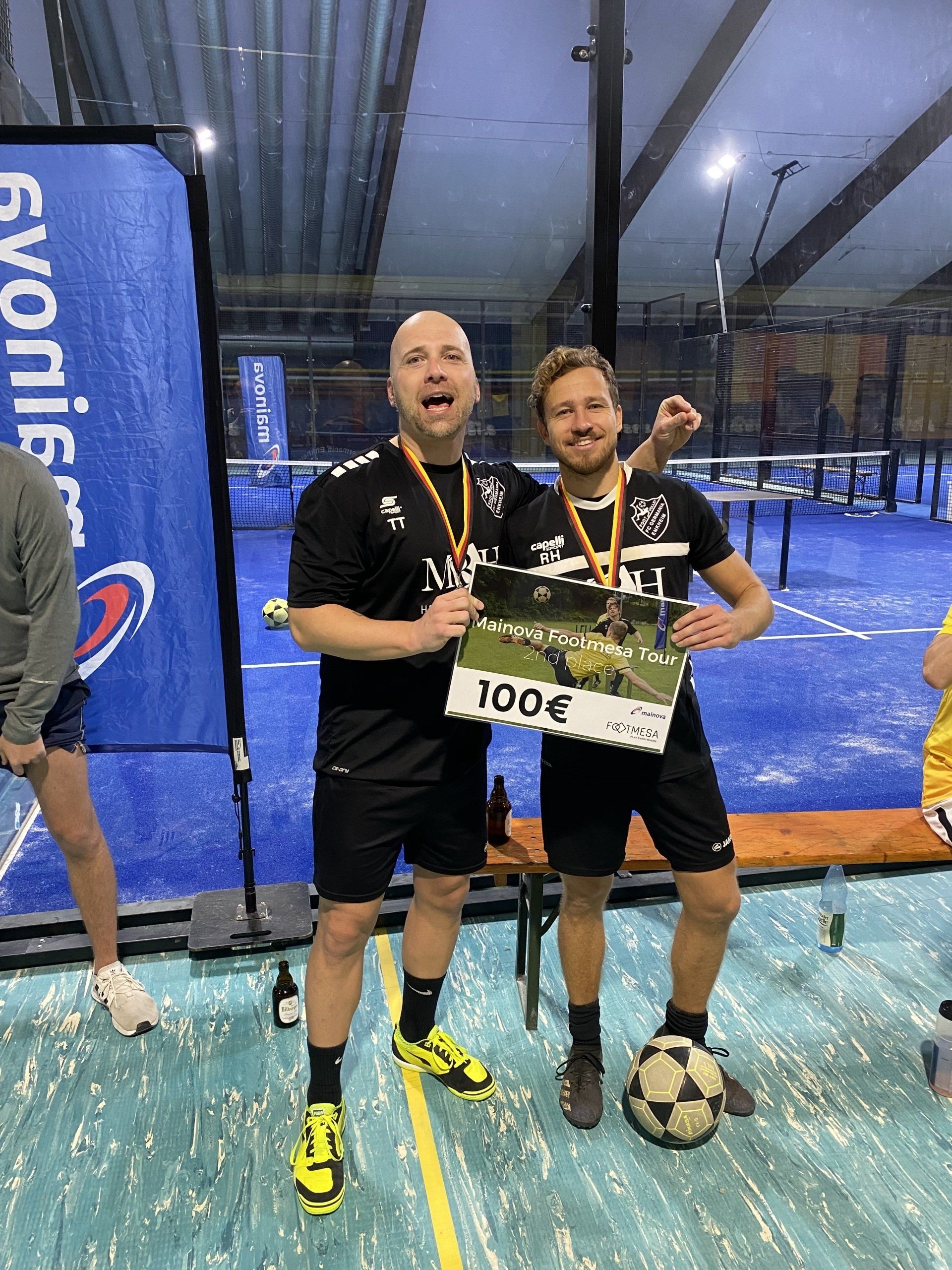 Die diesjährige Deutsche Footmesa Meisterschaft in Mainz war nicht nur sportlich ein großer Erfolg, sondern auch ein Highlight der diesjährigen Turnierserie. So konnten wir uns mit Teams aus Hamburg, Hannover, Erfurt, Karlsruhe, München sowie den bekannten Teams aus dem Rhein Main Gebiet messen. Mit mehreren Podestplätzen und beeindruckenden Leistungen haben unsere Spieler den Verein wieder einmal hervorragend vertreten. Silbermedaille in der Offenen Meisterschaft für Andi und Philipp (Caipi Boys) In der Königsdisziplin – der Offenen Deutschen Meisterschaft – kämpften sich Andi und Philipp souverän bis ins Finale. Nach einem Halbfinalsieg gegen Michi und Daniel entwickelte sich das Endspiel zu einem echten Krimi, der erst im dritten Satz hauchdünn für die Mainzer Topspieler Simon und Daniel entschieden wurde. Am Ende reichte es für einen starken zweiten Platz – herzlichen Glückwunsch! Starkes Abschneiden im Einzel und Mixed Im Herren-Einzel teilten sich Andi und Michi den ersten Platz und bestätigten damit ihre Topform, sie räumten eine ganze Palette an starken Gegnern aus dem Weg unter anderem den aktuellen deutschen Teqball Meister im Einzel. Philipp wurde mit Leni vom FC St. Pauli Zweiter im Mixed, das FInale ging ganz knapp an das Duo Toni und Yannic vom FC St. Pauli. Weitere Platzierungen Auch neben dem Finale gab es tolle Germania-Ergebnisse: Michi sicherte sich zusätzlich den dritten Platz in der Offenen Meisterschaft. Patrick belegte einen hervorragenden sechsten Rang – ein super Erfolg bei knapp 50 Teilnehmenden! Spannende Matches, Zusammenhalt und Community-Feeling Das gesamte Turnier war geprägt von Teamgeist, sportlichem Ehrgeiz und großartiger Atmosphäre. Ein großes Dankeschön an unseren Partner Nijodex, der alle Spielerinnen mit Turniershirts ausstattete, und an die vielen Helferinnen vor Ort. Herzlichen Glückwunsch an alle Siegerinnen und Sieger – wir freuen uns schon jetzt auf die nächsten Herausforderungen, so geht es im Januar nach Teneriffa zum Traininglager, Andi Peter dazu: "Am Strand von Los Cristianos holen wir uns die Körner für die nächste Saison - unser Ziel ist es die Germania im Footmesa auch weiterhin international erfolgreich zu vertreten"