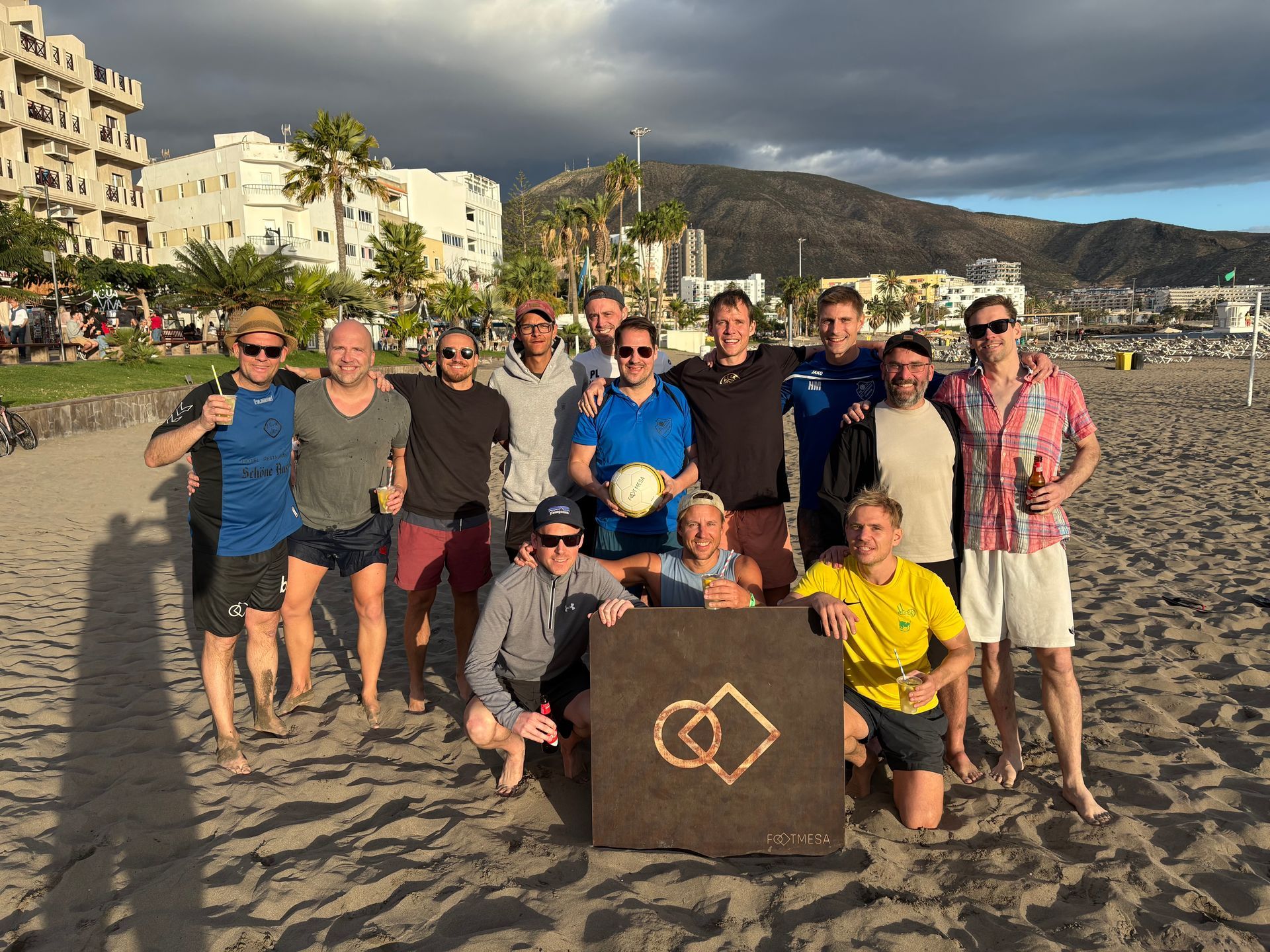Wenn die Temperaturen in Deutschland sinken, packt die Footmesa-Abteilung der Germania ihre Sachen zieht sich den Hut auf und schnallt sich die Sonnenbrille an! Dieses Jahr haben 13 mutige Helden den Weg ins sonnige Los Cristianos auf Teneriffa gefunden, wo wir uns am schönst gelegenen Fährhafen der Kanaren auf die neue Saison vorbereiteten. Neu im Team waren dieses Mal die tollen Neuzugänge Hubi, Hashim und Pade. Das Trio sorgte gleich für gute Laune und einen Hauch von Aufregung! Neben den intensiven Footmesa-Trainingsstunden haben wir auch ordentlich in Volleyball, Boardball und Boule unser Können unter Beweis gestellt. Das Wetter? Fabelhaft! Beste Trainingsbedingungen herrschten, und wir haben bis zum Sonnenuntergang am Strand geschwitzt. Die Trainingsgestaltung war ein Genuss: Ein fließender Übergang zwischen Training und den Abendveranstaltungen in den lokalen Fischrestaurants machte aus jeder Trainingseinheit ein Fest. Es gab nicht nur Stullen und Wasser, sondern auch die ein oder andere kulinarische Entdeckung, die wir uns redlich verdient hatten. Die kommende Footmesa-Saison hat einige Highlights parat! Das große Ziel ist die Europameisterschaft in San Marino vom 12. bis 14. Juni! Und ganz nebenbei gibt es sogar eine sehr wahrscheinliche Weltmeisterschaft in Rom im Oktober. Für beides müssen sich die Enkheimer gegen die bärenstarke Konkurrenz erst noch qualifizieren, da nur 2 Teams für Deutschland an den Start gehen können. Unser Nachwuchstalent Michael Peter hat da einen klaren Blick: „Wir sind gut vorbereitet, aber die Konkurrenz schläft nicht!“, sagte er mit dem typischen Ernst eines aufstrebenden Sportlers. „Ich bin überzeugt, dass wir uns qualifizieren werden und dann in San Marino glänzen können!“ Wie immer, war das Trainingslager wie immer eine bunte Mischung aus schweißtreibendem Training und ausgelassener Stimmung. Und wenn man eines sicher sagen kann: Die Germanen machen nicht nur Sport, sie leben ihn! Das nächste Mal auf den Kanaren sind wir sicher wieder am Start!