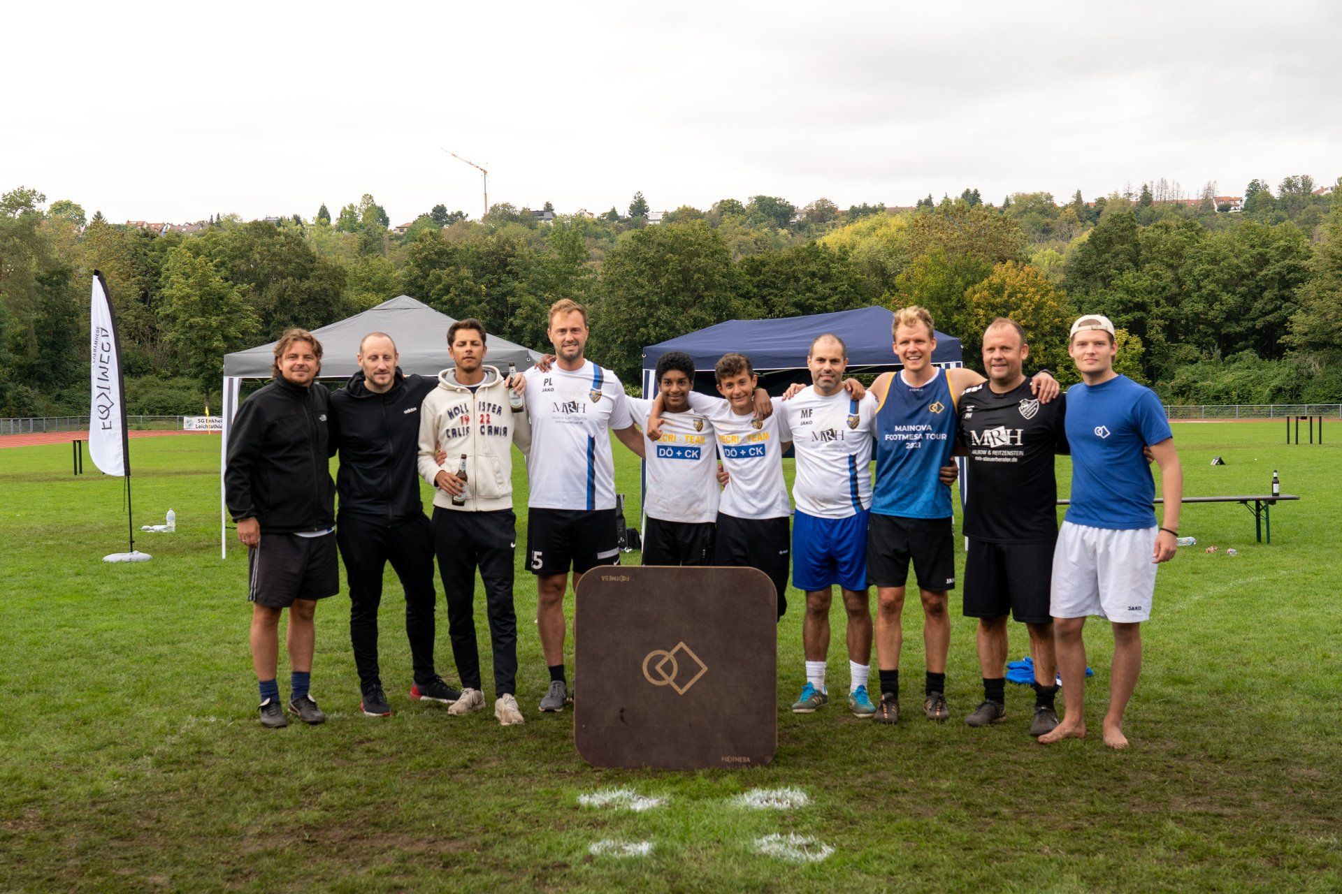 Am 19. September fand zum vierten Mal ein Footmesa-Turnier im heimischen Riedstadion statt. Zum vierten Stop der Mainova Footmesa Tour gesellten sich insgesamt 17 Teams nach Enkheim. Die weiteste Anreise hatten vier Spieler, die extra aus Brasilien angereist waren, unter ihnen mit Gabriel Gubela ein ehemaliger Nationalspieler Brasiliens, der in Europa für den FC Malaga und Panathinaikos Athen spielte. Wir durften auch zum zweiten Mal unsere Freunde aus Civitanova begrüßen, die extra aus Italien angereist sind. Darüber hinaus fanden Teams aus Walldorf, Darmstadt und Mainz den Weg nach Enkheim, drei Teams stellte zudem der Lokalrivale aus Bornheim. Die Germania ging mit sechs Teams an den Start, wobei kurzfristig die hochgehandelten Spieler Robin Halbow, Moritz Lange und Tiho Tomic absagen mussten, da sie sich nicht auf ein Spielsystem einigen konnten.
