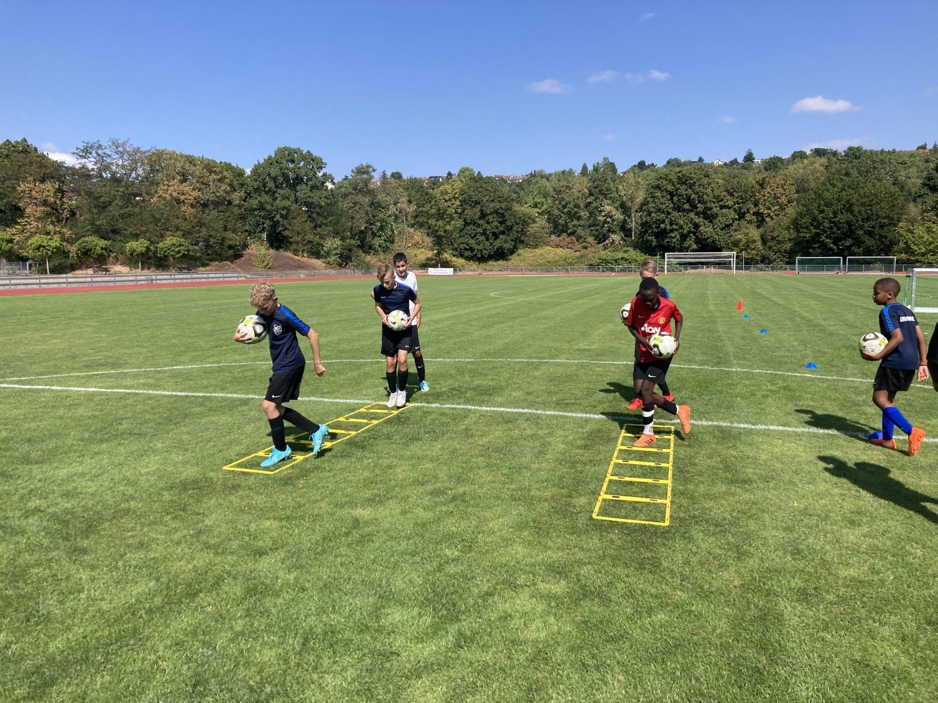 Das vorletzte Ferien-Wochenende nutzte die D1 in kleinerer Runde als geplant zum Start in die neue Saison nach der Sommerpause. Bei gut auszuhaltenden Vormittagstemperaturen trafen sich die Spieler von Freitag bis Sonntag im Riedstadion um die ersten Trainingseinheiten zu absolvieren. Nach und nach werden in der letzten Ferienwoche weitere Spieler zu den Übungseinheiten hinzustoßen. Aus diesem Grund standen zunächst noch Basics wie Aufwärmroutinen, Technik, Koordination auf dem Programm. Nebenbei wurde natürlich auch an der Ausdauer gearbeitet. Ob und wie die individuellen Ferien-Hausaufgaben ernst genommen wurden, wird sich in den nächsten Wochen zeigen. Die beim Trainingsstart anwesenden Spieler haben erfreulicherweise die Chance genutzt, die Vorbereitung motiviert anzugehen. Vor allem die letzte Einheit hat einiges an Kraft gekostet. Es hat sich gezeigt, wie bereit die Spieler sind an Ihre Grenzen zu gehen. Wo das gesamte Team von der Entwicklung steht, wird sich dann in den Vorbereitungsspielen und dem Pflichtspielstart Anfang September zeigen.